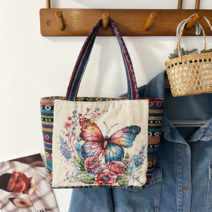 新款双面蝴蝶提花绣手拎包上班族可爱手机便当包便携百搭手提小包