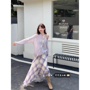大码女装不规则格纹春秋夏季设计感垂感吊带裙胖MM遮肚显瘦连衣裙