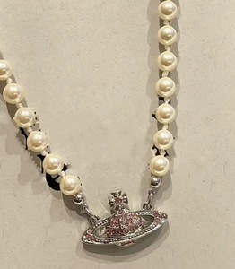 土星珍珠粉钻项链【白金色】