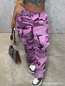 欧美跨境热销2025高腰直筒多色迷彩工装裤亚马逊爆款街头风工装裤