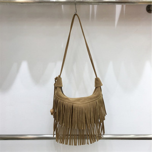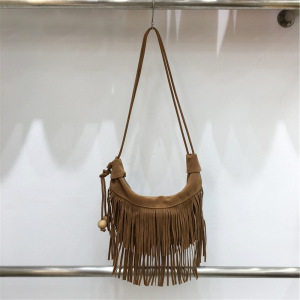 本季 自制新款时尚波西米亚风复古磨砂绒流苏包单肩腋下饺子包