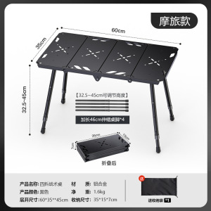 户外四折桌折叠桌子igt对折铝合金便携式露营超轻量黑化风战术桌