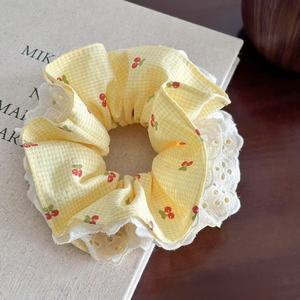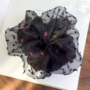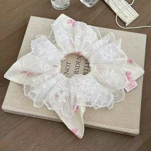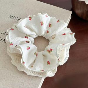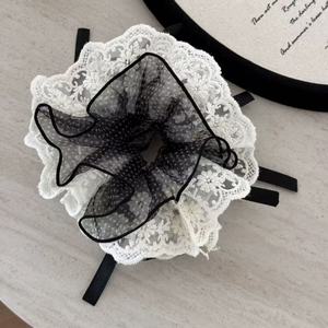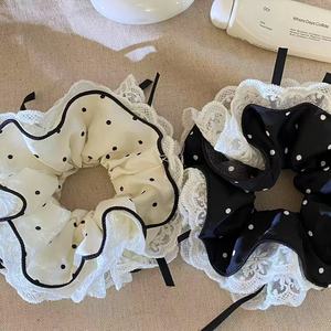 韩系甜美复古波点蕾丝蝴蝶结大肠发圈温柔高级感发绳头花发饰新款