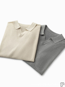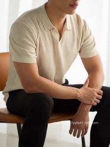 舒适感~老钱风亚麻古巴领针织POLO衫男短袖修身海鸥领t恤男夏季薄