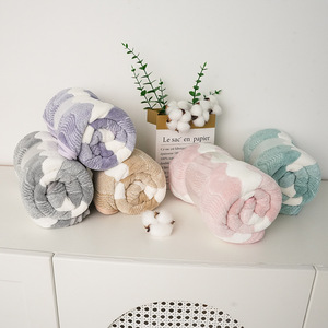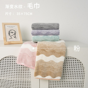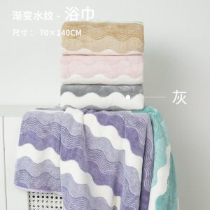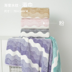 向峰新款家用珊瑚绒浴巾加大加厚浴巾跨境宽条吸水水波纹毛巾批发