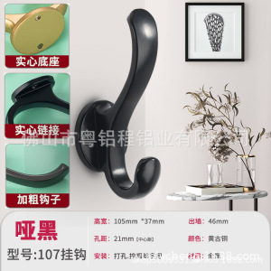现代简约挂衣钩打孔固定卧室浴室鞋柜进门玄关橱柜黑色衣帽钩
