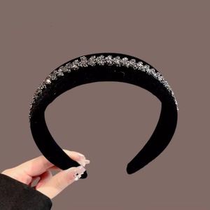 高颅顶发箍女高级感时尚水钻海绵宽边压发卡2025新款丝绒头箍发饰