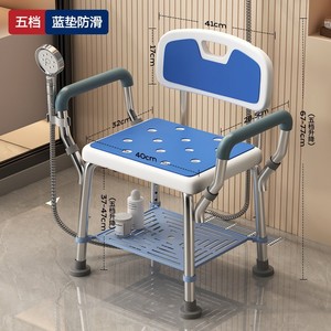 新款日式老人洗澡椅防滑扶手沐浴椅孕妇防摔可调节浴凳带置物架