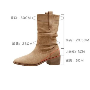 牛皮版~堆堆马丁靴旅游内增高方头短靴子高跟复古西部骑士中筒靴