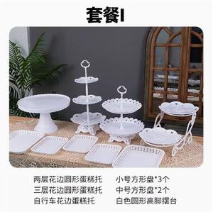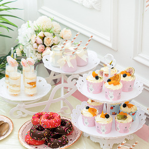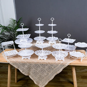生日布置甜品台摆件婚礼展示架子欧式水果糖果塑料蛋糕托盘点心B&