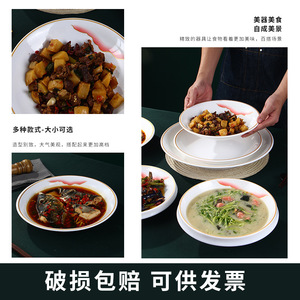メラミン逆口プレート白深皿揚げ麺プレート業務用ホットプレート鍋食器模造磁器大皿チキンプレート