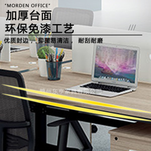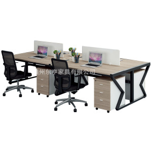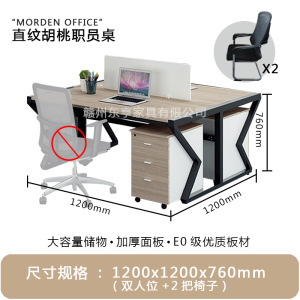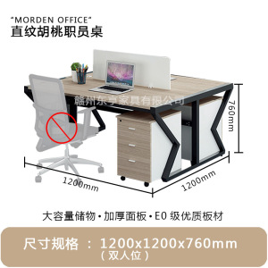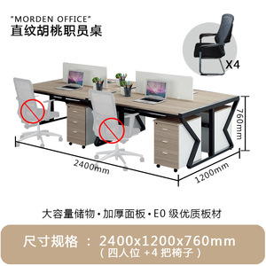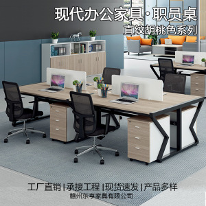 オフィススタッフデスク 4人用スクリーンカードシート ウォールナットデスクとチェアの組み合わせ シンプルなスタッフコンピューターデスク