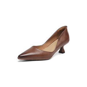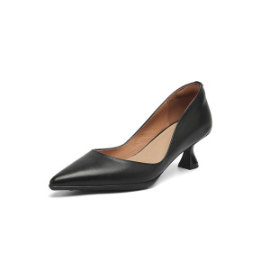 履きやすいハイヒール、ソフトスポーツ厚底2025秋細ヒールポインテッドトゥ本革浅口ワークシューズ女性用