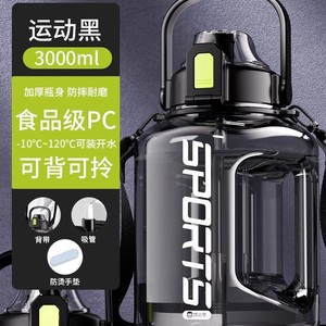 运动黑3.0L【可装开水】出口PC+带刻度+吸管+提手+背带+防烫手垫