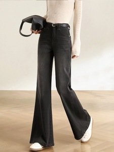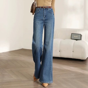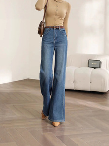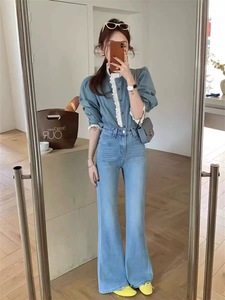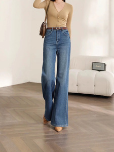 梵思羽2025春夏牛仔裤女款复古高腰显瘦小个子大码弹力修身喇叭裤