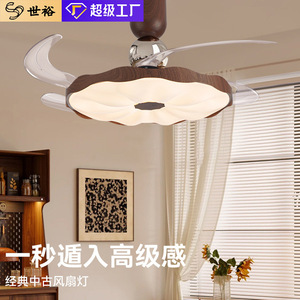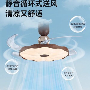 卧室隐形风扇灯吸顶灯中古奶油风餐厅房间书房吊扇灯静音护眼灯具