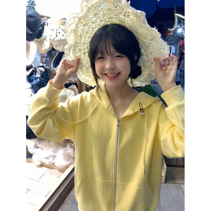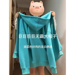 湖蓝色连帽卫衣2025新款小众外套女春秋chic上衣韩系穿搭即墨卫衣