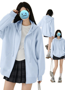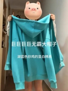 湖蓝色【袖口带拉链】 【大版插肩连帽】