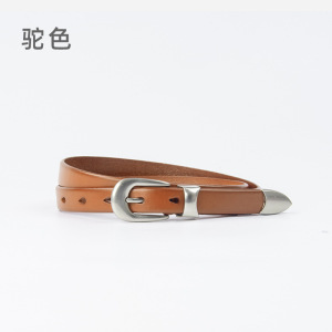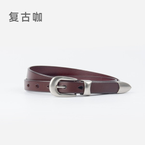 新款复古欧美休闲头层牛皮细腰带皮带女士合金针扣个性配牛仔裤