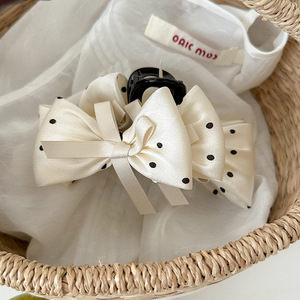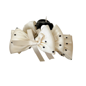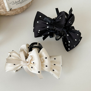 高级感黑白复古波点蝴蝶结抓夹气质百搭后脑勺盘发鲨鱼夹精致发饰
