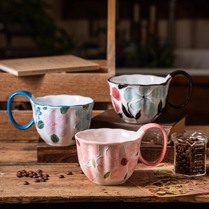 手绘浮雕早餐杯高颜值伴手礼陶瓷女马克杯咖啡杯大容量杯子麦片杯