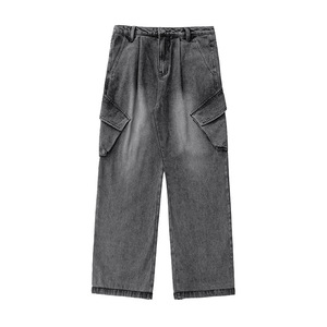 ウォッシュ加工ダメージ加工ワークジーンズメンズ春夏新作サイド立体ポケットストレートパンツ質感ゆったりロングパンツ