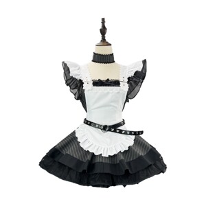 新しいレトロな黒と白のストライプロリータメイド衣装サブカルチャー日本のかわいいエプロンスーツcosドレス