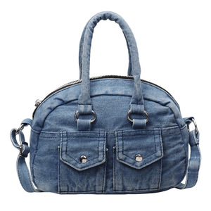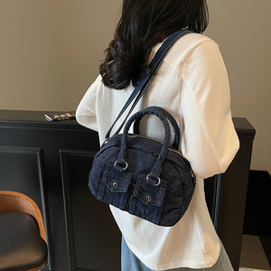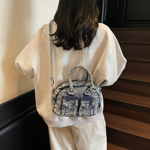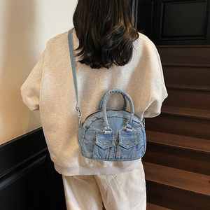 2025 新レトロカジュアルハンドバッグ女性のファッショナブルなニッチデニムボウリングバッグ通勤ショルダーメッセンジャーバッグ