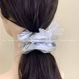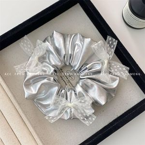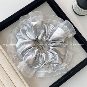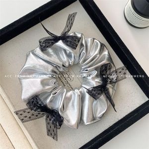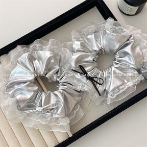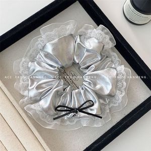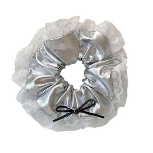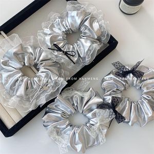 韩国夏季甜酷新品亮银色蝴蝶结蕾丝边发圈发绳肠圈博主同款发饰女