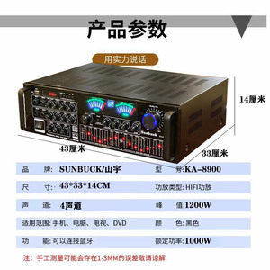 额定500W大功率家用功放机五声道功放高保真K歌功放内置蓝牙遥控