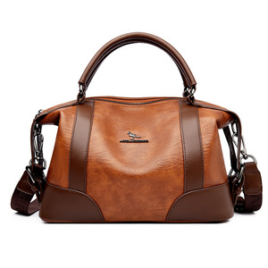 跨境外贸新款欧美复古机车包女士真皮质感手提包单肩斜挎包代加工