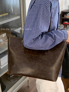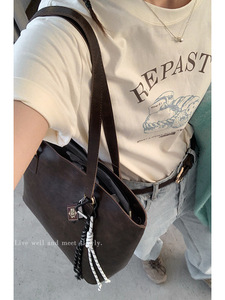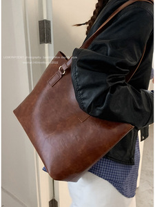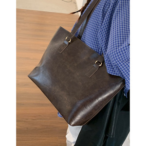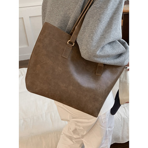 复古高级感通勤女士包包2025新款纯色简约大容量托特包百搭单肩包
