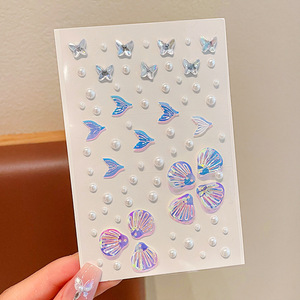 子供用フェイスペイントステッカー、小さな女の子の輝くダイヤモンドフェイスステッカー、貝殻、魚の尾、蝶の立体フェイスステッカー