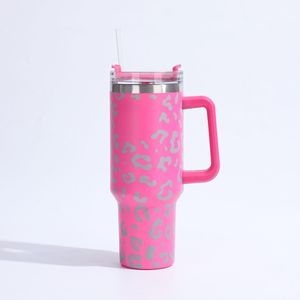 创意豹纹图案不锈钢保温杯大容量吸管手柄杯户外车载随行汽车杯