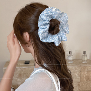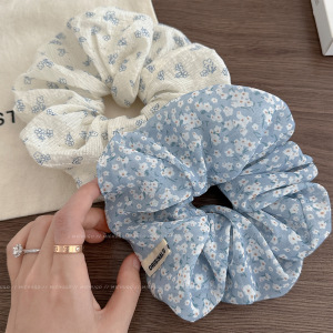 韩系蓝白碎花大肠发圈女2025新款扎头发绳大号马尾头绳橡皮筋发饰