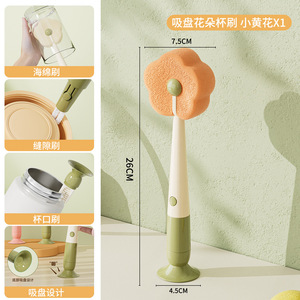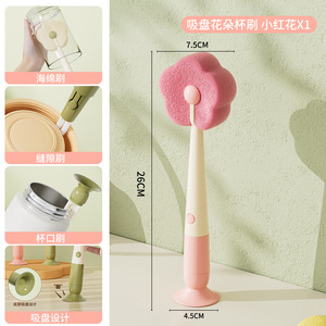 三合一奶瓶刷花朵吸盘海绵清洁奶嘴刷长柄多功能杯口瓶口缝隙刷子