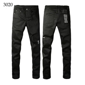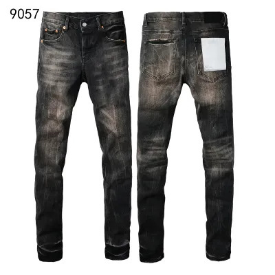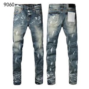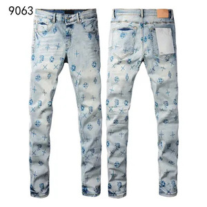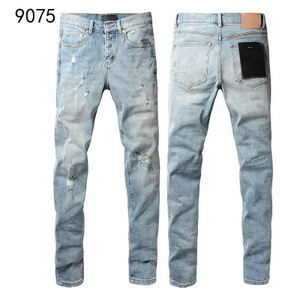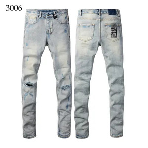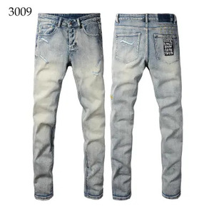 现货欧美美式个性时尚复古做旧破洞高街长裤修身贴布牛仔裤男