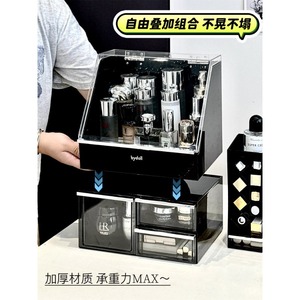 化妆品收纳盒桌面大容量透明防尘箱柜梳妆台高级感护肤品口红架子