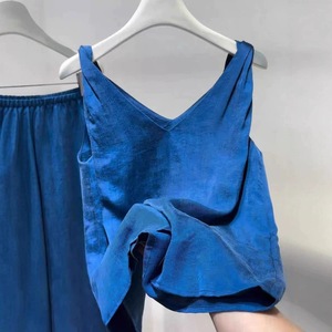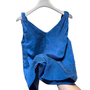 牛X货 巨炸裂!蓝色V领扭结吊带背心女夏季度假风时髦感无袖上衣