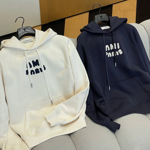 跨境!ami连帽卫衣25年秋冬新款重磅字母刺绣男女休闲帽衫棉上衣