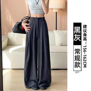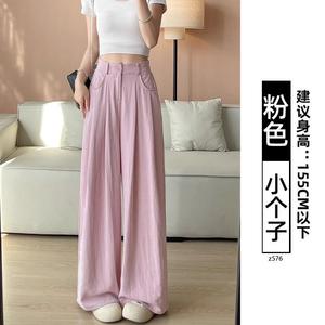 夏季小个子百搭休闲裤女冰丝奶芙裤薄款山本裤高腰阔腿裤宽松裤子
