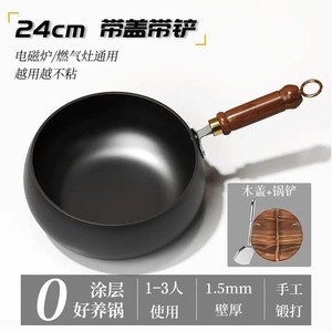 【昔ながらの製法で作られた鉄鍋】鍋本体+木製蓋+鉄製ヘラ☆♢
