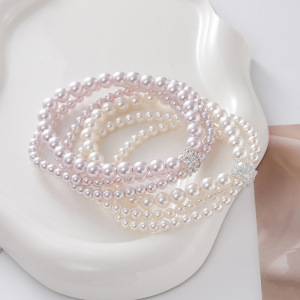 新款玫瑰施家珍珠手链三层叠戴微镶锆石轻奢高级感优雅气质手饰女