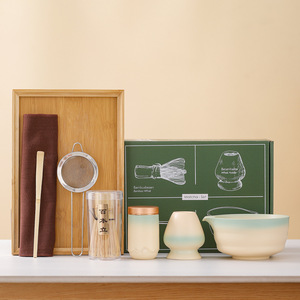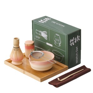 新款2件套Matcha抹茶绿色陶瓷抹茶碗工具套装礼盒茶宪带抹茶罐