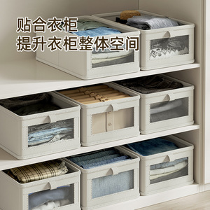 收纳盒日式大号可视窗棉麻收纳整理盒可折叠衣物家用布艺收纳神器