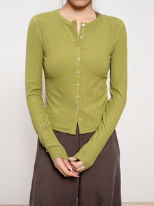 春秋新款针织长袖圆领开衫女外套 慵懒修身针织衫薄款上衣 小开衫