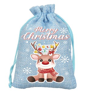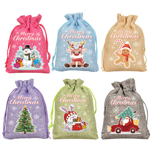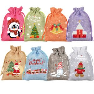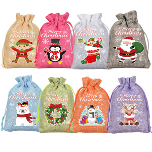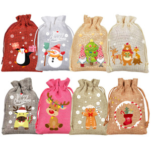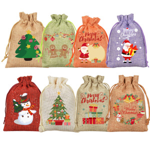 2025新款跨境圣诞麻布束口袋抽绳粗麻布礼物糖果袋圣诞礼品袋套装