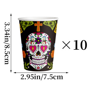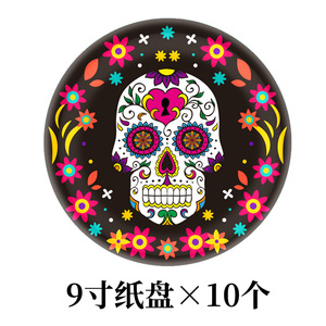 墨西哥亡灵节主题派对桌面装饰餐盘一次性纸杯纸盘刀叉勺套装批发