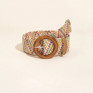2025跨境波希米亚风格宽松连衣裙编织草腰带(女用)