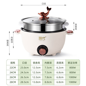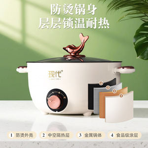 粤尔德直供 现代星耀电煮锅家用大容量电火锅带蒸屉煎炒不粘电锅